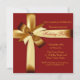 Obtenez tous enveloppés dans l'amusement de vacances avec cette invitation rouge foncé avec le ruban d'or et cintrez pour ressembler à un paquet de vacances.