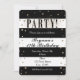 Invitation de PARTIÈE à paillettes fausses rayées noir et blanc. Personnalisez pour tout événement.