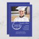 Blanc saisissant sur la conception bleue comportant le casquette abstrait d'un chef et le mot "chef" avec un soulignage d'étoile. Ajoutez juste votre photo préférée pour lui faire le vôtre.