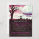 Arbre mort au cimetière avec des oiseaux volant au-dessus du cimetière avec des cieux roses - avec semi nuage couvert pleine lune appropriée pour Halloween, Anniversaire gothique ou une invitation spéciale de fête ou tout type d'occasion. Tout le texte est entièrement personnalisable.