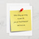 Ceci fait une grande invitation à une célébration de divorce… ou à n'importe quelle autre "torsion de complot" principale :) personnaliser l'invitation en ajoutant votre propre texte, noms et même photos. L'invitation d'amusement avec une note de post-it a goupillé à elle, et au message : "Quand quelque chose va mal TORSION dans votre "COMPLOT" de la vie, juste de hurlement et mouvement sur" - grand conseil ! Essayez-la - cela fonctionne ! ;) invitation d'amusement d'A pour n'importe qui passant par un temps provocant. Vous pourriez ajouter le texte au dos qui indique que quelque chose comme "votre présence est demandée… au reste de votre vie !" ou "vous êtes invités… les meilleurs jours de votre vie" disponible sur de divers styles et tailles.
