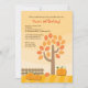 Une invitation saisonnière parfaite pour toute célébration d'automne. Le arrière - plan de pêche à la crème dégradée est doté d'une clôture de piquetage, d'un arbre aux feuilles d'automne et de citrouilles. Conception par Vecteezy - Arbre saisonnier par zhaolifang.