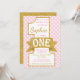 Invitation de premier anniversaire rose et or ● © Puggy Prints. Tous droits réservés. ● Les détails de la parties scintillant sont simulés dans l'illustration. Il n'y aura pas de parties scintillantes sur ce produit.