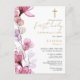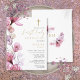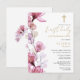 Invitation de première communion florale rose poud