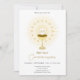 Invitation élégante de Première Sainte Communion avec calice, étoiles dorées et croix.