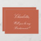 Élégante invitation de présentation de propositions en Terracotta, s'il vous plaît personnaliser les deux côtés de la carte comme souhaité, en utilisant le modèle de personnalisation en ligne avant de commander. La conception peut également être personnalisée pour d'autres rôles de gardienne de mariage, comme Flower Girl, Maid of Honor/Honor et Matron of Honor/Honor.