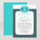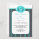 Cette invitation de réception de mariage après la cérémonie est un design très moderne car elle présente le monogramme mis à jour (un monogramme pour lui et elle) en haut. De plus, les couleurs modernes bleu œuf de robin et gris acier sont associées dans une belle rayure. Une invitation de réception de mariage après la cérémonie époustouflante. Copyright henishouseofpaper