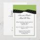 Célébration de mariage après la cérémonie à pois noirs et verts. Ceci est parfait si vous avez eu votre mariage dans un autre lieu mais que vous voulez maintenant célébrer avec votre famille et vos amis. Si vous souhaitez déplacer le texte, ou changer la taille, la police ou la couleur, cliquez sur Personnaliser. Si vous avez besoin d'aide ou si vous souhaitez une carte RSVP séparée, veuillez envoyer un courriel à shutterbug600@yahoo.com ou cliquer sur Contact sous le produit.