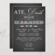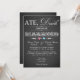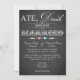 Cette invitation de réception de mariage après-cérémonie LOOK sur tableau noir en blanc et noir avec typographie de style vintage comporte une variété de polices avec des volutes et des cœurs roses et bleus. C'est une nouvelle interprétation amusante de la tendance "Manger, boire et être marié", avec un jeu de mots qui dit "A mangé, a bu et s'est marié" pour refléter l'événement de mariage antérieur. Elle est présentée ici sur du papier de base. Elle est facilement personnalisable avec vos propres informations. Il y a du texte personnalisable que vous pouvez modifier comme vous le souhaitez. NOTEZ AUSSI que tout sera imprimé tel qu'il apparaît sur votre écran. Zazzle ne modifiera rien pour les fautes de frappe ou les problèmes d'alignement, etc., et je ne le verrai pas une fois que vous l'aurez commandé. Si vous avez besoin d'aide pour la formulation, veuillez m'envoyer un e