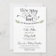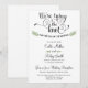 Annoncez à vos amis et à votre famille que vous vous marierez lors d'une cérémonie privée, puis invitez-les à une célébration de réception de mariage / réception après le mariage. Personnalisez avec vos informations. Avec la formulation "Nous nouons le nœud" dans un script délicat avec des feuilles vertes dessinées à la main.