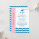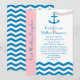 Cette invitation de réception de mariage post-nuptiale sur le thème nautique est présentée en rose et bleu. Le design présente une ancre jetée dans une mer en chevron ou en zigzag. Vous pouvez personnaliser le design avec le nom des mariés, les détails de votre mariage et les détails de votre réception de mariage post-nuptiale pour créer une invitation sur le thème nautique. Copyright henishouseofpaper