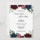 Cette invitation de réception de mariage «Célébration estivale» inspire une atmosphère florale traditionnelle et élégante pour une réception de mariage dans un jardin. Avec des fleurs roses, bleues royales et bordeaux cabernet, les rouges riches et la palette marine combinés à des paillettes dorées complètent les thèmes formels de printemps, d'été et d'automne, créant une expérience de célébration de mariage de luxe classique et polyvalente.