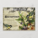 Carte d'emplacement d'informations de réception assortie. PALETTE DE COULEURS : jaune, beige, crème, orange, vert et noir. CONCEPTION : Cet ensemble de faire-part de mariage ou collection, inspiré de la typographie ancienne vintage, comprend un ensemble complet de produits et a été créé en plusieurs coloris. Utilisant des volutes décoratives d'ornements d'imprimeur vintage de l'ère victorienne baroque, mélangées à l'art floral de carte postale comprenant le muguet, les violettes anglaises, les roses et les fleurs de gueule-de-loup. Un couple d'oiseaux chanteurs jaunes avec une cage à oiseaux ouverte complète le devant de l'invitation. Le verso comprend votre texte, qui est facilement personnalisable à l'aide des champs de modèle pour la personnalisation. Il y a plus de dessins de fioritures en volutes, des travaux de ligne en volutes, des bords vieillis et grunge et la cage à oiseaux et les roses