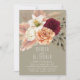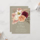Cette invitation de réception de mariage rustique présente des fleurs peintes à la main en burgundy, ivoire, pêche et rose saumon avec des accents d'herbe de pampa sur un fond taupe doux. Parfait pour une célébration décontractée mais élégante après votre cérémonie, ce design convient aux mariages d'été ou de début d'automne avec un thème romantique boho ou campagnard.
