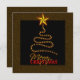 Arbre de Noël Abstrait - ABCT100 © Sunny Mars Designs. Des invitations ou invitations de Noël en noir et or personnalisables par des carrés arborent un arbre de Noël abstrait fait d'étoiles et une grande étoile en haut, avec les mots "Joyeux Noël" en dessous.