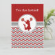 Invitations personnalisées à la fête de l'aube ou de la fête avec des rayures de chevrons rouges et gris et du texte personnalisé.