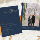 Cette invitation de renouvellement de vœux présente une police manuscrite audacieuse et un design minimaliste moderne avec une combinaison de couleurs bleu marine et or. Ajoutez une photo au verso pour une touche personnelle.