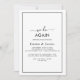 Célébrez votre amour éternel avec cette invitation de renouvellement de vœux minimaliste "We Do Again". Le design moderne et romantique présente une typographie classique en noir et blanc, complétée par une calligraphie rustique et élégante dans un style à l'ancienne écrit à la main. Personnalisable dans n'importe quelle couleur, vous pouvez garder le design simple et sophistiqué ou le personnaliser avec vos propres graphiques et illustrations. Parfait pour une célébration de renouvellement de vœux sincère et élégante.