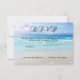 Carton d'invitation de réponse élégant pour un mariage sur la plage ou de destination avec une peinture colorée de la plage. Le texte stylisé de réponse au recto est une image séparée et peut être supprimé si vous préférez un texte personnalisé. Vous pouvez personnaliser tous les textes, changer les polices et plus encore. Pour toutes les options, choisissez "personnaliser". Cette carte de réponse fait partie d'une collection de mariage avec des produits assortis.