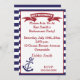 Invitation ou annonce de retraite amusante et colorée sur le thème de la mer rouge, blanc et bleu. L'art graphique présente un ruban festif avec le mot retraite. Bleu et blanc arrière - plan strippé avec une bordure rouge. Un ancre nautique bleu est inclus. Invitation vos amis à une fête de retraite surprise, un déjeuner de retraite ou une fête de retraite. Idéal pour les événements nautiques, les marins, la retraite de la Marine, la Retraite de la Marine et plus encore.