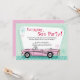 Cadillac rose Invitation et éléments rétro turquoises sur cette amusante invitation à thème des années 50