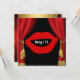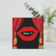 Invitation de fête d'anniversaire avec lèvres grosses, batterie, saxophone, trompette, noir, rouge, or et rideaux