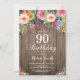 Rustic Floral 90e anniversaire Invitation pour les femmes. Fleur florale aquarelle, Arrière - plan en bois rustique. Vintage Retro. Anniversaire adulte. Femme Lady Ado Adolescente Anniversaire Invitation Bassin. 13e 15e 16e 18e 20e 21e 30e 40e 50e 60e 70e 80e 90e 100e. N'Importe Quel Âge.