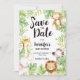 Magnifique invitation de sauvegarde de la date des animaux de la jungle.