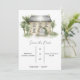 C'est une simple invitation de sauvegarde de date sur un fond blanc uni avec une peinture de manoir en haut. Il contient le lieu, le nom du couple et la date.
