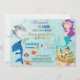 Invitation à l'anniversaire de la Sirène et des frères et soeurs de requins. Sirène et requin invitation d'anniversaire de bash. La taille est de 5x7. Pour d'autres articles correspondants, toute question ou pour des commandes personnalisées s'il vous plaît contactez-moi. Merci.