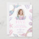Invitation modifiable pour cinq ans avec photo de sirène Queue de sirène rose violet Invitation pour le cinquième anniversaire 5 paillettes pastel thème Z8