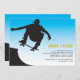 Une silhouette de skateboard contre un arrière - plan bleu à blanc. Idéal pour tous les âges.La carte est facile à customiser avec votre libellé, police, couleur de police et choix de six types de papier.