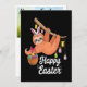 Paresseux de Pâques avec un panier d'œufs colorés en arrière-plan