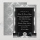 Soirée de gala d'entreprise en tenue de soirée. Utilisez pour tout événement, lancement ou présentation pour votre entreprise, dîner de collecte de fonds, soirée de travail d'entreprise. Personnalisez pour modifier ou ajouter des détails. Élégant damas noir et argent & noeud papillon bijou. Veuillez noter : Toutes les images plates !