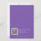 Purple Moderne et simple QR Code Mariage Soirée de soirée Invitation. La couleur et le type de police peuvent être modifiés via le menu d'édition. Vous pouvez également modifier les couleurs du texte et de l'arrière - plan de chaque côté si vous le souhaitez. Ajoutez votre code QR à votre site Web mariage au verso comme option pratique pour vos invités à RSVP. Les codes QR peuvent être créés gratuitement en ligne. Cherchez simplement "créateur de code QR" et sélectionnez l'un des créateurs libres. Vous pouvez également supprimer le code QR si vous le souhaitez.