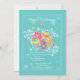 Une belle invitation turquoise avec les oeufs de pâques admirablement colorés et les fleurs de fantaisie et feuillage encadré avec un cadre pointillé.