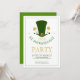 Modèle de l'invitation de la fête de St. Patrick. Shamrock vert et or et casquette de parti vert simple illustration. Arrière - plan blanc modifiable.