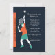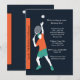 Une invitation au sport pour l'anniversaire d'un passionné de tennis. La carte comporte un joueur de tennis masculin sur le point de servir le ballon. Les couleurs audacieuses orange, turquoise et blanc saute aux arrière - plans noirs.