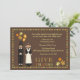 Invités d'invitation à votre dîner de thanksgiving avec cette invitation avec du charme. L'arrière - plan brun a un chapiteau de fête, un couple de pèlerin, le feuille de chute et les glands. (VT)