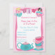 Cette invitation de thé est décorée d'une théière verte turquoise se reposant à côté d'une pile de tasses de thé vertes et roses turquoises sur le fond de l'invitation. Au dessus de l'invitation il y a deux filles assez petites ornées dans des robes se reposant dans une tasse de thé. Trois papillons sont au centre du dessus de l'invitation. Customisez le texte pour votre événement.
