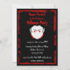 Vue dans rouge sang, avec un arrière - plan noir cette invitation comporte le visage déplaisant d'un vampire et les mots "partie de Halloween" en rouge.