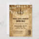 Invitation de vente de grange de lustre de whiskey sur le bois avec le baril de whiskey, le lustre, et les lumières de ficelle