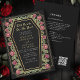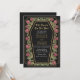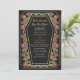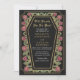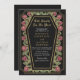 Faites une déclaration audacieuse d'amour éternel. Cette invitation tout-en-un mariage gothique présente "Till Death Do Us Part" dans un cadre en forme de cercueil, orné d'épines, de roses et d'accents d'or contre un arrière - plan noir avec son propre code QR à l'arrière de l'invitation. Parfait pour une fête romantique ! Personnalisez le texte, la police et la couleur arrière - plan en fonction de vos préférences de conception. Objets correspondants dans notre boutique pour un thème de fête complet. Veuillez noter que l'or sur l'invitation n'est PAS un vrai papier d'aluminium et est imprimé en couleurs plates.