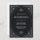 Ces invitations de mariage séduisantes présentent une touche moderne d'art déco classique. Un cadre géométrique blanc et ornemental orné orne un élégant arrière - plan noir onyx foncé pour un look de mariage spectaculaire et vintage.