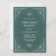 Ces élégantes invitations de fêtes de Noël ont une touche moderne sur l'art déco classique. Un cadre géométrique blanc et orné orne un arrière - plan vert festif pour un look de vacances classique mais glamour.