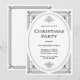 Ces élégantes invitations noires et blanches pour fêtes de Noël présentent une touche moderne d'art déco classique. Un cadre géométrique noir orné et ornementé décorent un arrière - plan blanc pour un look de vacances classique mais glamour.