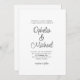 Imaginez un sens de la simplicité moderne avec ce design simple et élégant. Les noms de mariée et mariée sont présentés dans un script de calligraphie moderne décontracté associé à un simple visage en italique donnant les détails de votre journée spéciale. Le résultat est un look minimaliste et de bon goût avec une touche moderne. Personnalisez le texte avec vos détails dans le modèle de texte facile à utiliser. Après avoir remplacé les exemples de noms par vos noms, vous devrez peut-être les centrer de nouveau à votre goût. Vous pouvez le faire en faisant défiler vers le bas du modèle de conception et en sélectionnant "cliquer pour customiser plus loin". Cela ouvrira le modèle de conception et vous permettra de cliquer et de faire glisser votre texte pour le recentrer si nécessaire.