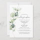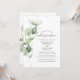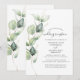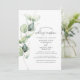 Invitation à la réception de mariage avec feuillage de eucalyptus que vous pouvez facilement personnaliser en cliquant sur le bouton "Personnaliser". Réutilisez complètement ce modèle de conception pour d'autres occasions spéciales de votre vie en cliquant sur "Modifier à l'aide de l'outil de conception" niché sous le bouton "Personnaliser" pour changer la couleur de fond, les polices et la mise en page