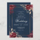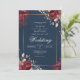 Invitation Deep Red Floral Navy Border Wedding