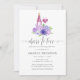 Aquarelle florale vin mariage dégustation des invitations à la douche nuptiale avec couleur de l'année 2018 ultra violet avec des nuances de violet et de sauge vert accents. Les fleurs comprennent hydrangée, lavande, pivoines et roses.